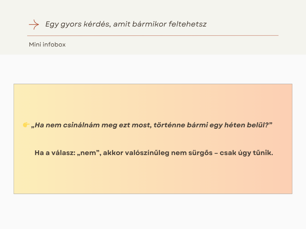 👉 „Ez tényleg fontos – vagy csak sürgős?”