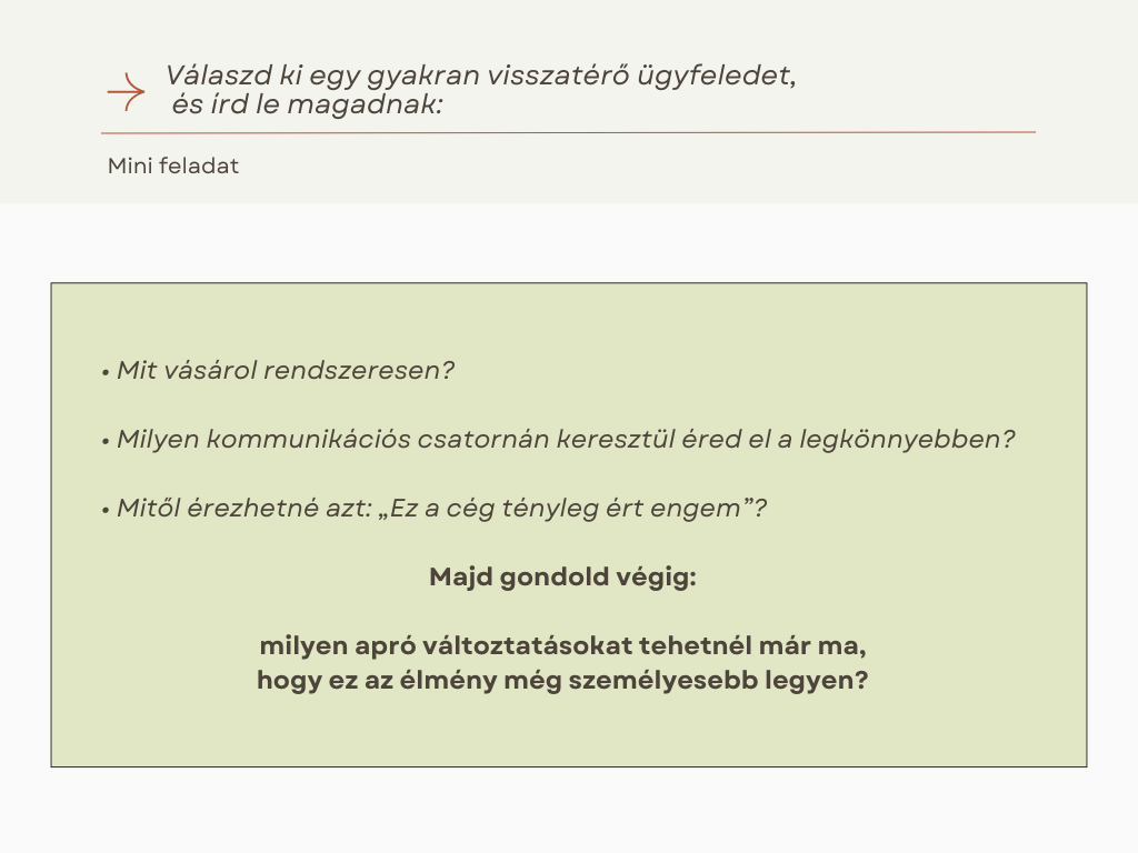 Kulcsgondolat: A lojalitás nem magától alakul ki. De ha értéket, figyelmet és személyességet adunk, akkor hosszú távon kifizetődik – nem csak újabb vásárlásban, hanem bizalomban is.